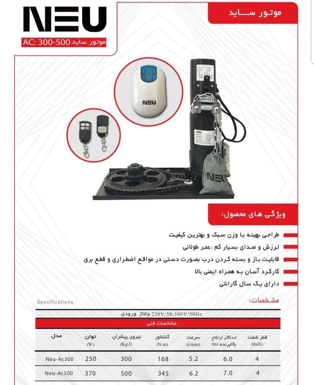 موتور ساید زنجیردار کرکره برقی نئو NEU سیصد کیلو ای سی :