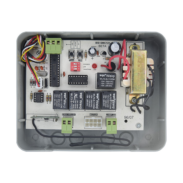 از امکانات این مرکز کنترل می توان به امکان تنظیم مدت زمان عملکرد موتور، تنظیم زمان بسته شدن اتوماتیک و امکان اتصال چشمی فتوسل و فلاشر اشاره کرد. همچنین قابلیت تغییر جهت حرکت موتور بدون نیاز به تغییر سیم بندی در این دستگاه وجود دارد.