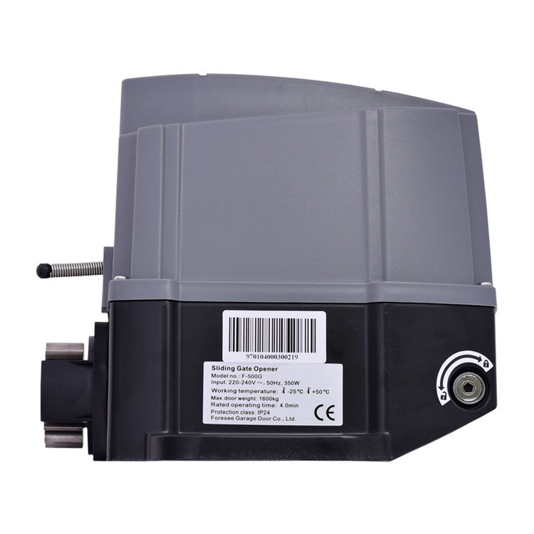 درب باز کن F500، جهت کنترل درب ریلی تا وزن 1500 کیلو گرم مناسب است. این درب باز کن از طریق ریموت لرنینگ عمل می کند، علاوه بر این، مجهز به کانکتور تحریک دستی است که امکان اتصال رسیور سیمکارتی و کلید کنترل دستی را فراهم می کند تا در صورت تمایل مشتری یا به همراه نداشتن ریموت، از طریق تماس تلفنی یا کلید کنترل دستی، اقدام به باز نمودن درب کرد.